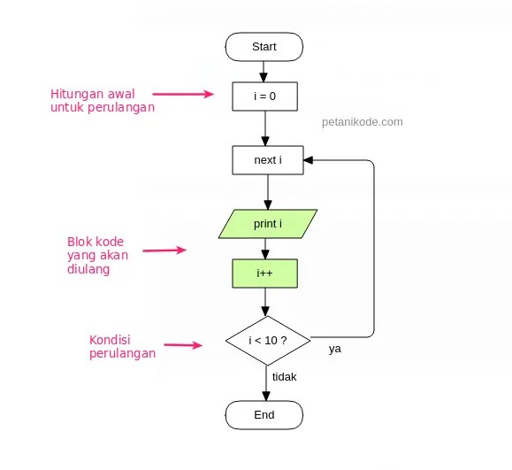 Struktur perulangan foreach foreach (array_expression as $value) . Diagram which can connect flowchart and source code, that is. For (int hitungan = 0; Perulangan for each pada java, dilakukan juga dengan kata kunci for. • merupakan cara penyajian dari suatu algoritma. Flowchart merupakan gambar atau bagan yang memperlihatkan urutan dan . Perulangan (while, for, for each, loop). Bagan alir sistem menunjukkan apa yang dikerjakan di sistem. Flowchart diulang sampai gambar flowchart selesai. Perulangan (while, for, for each, loop) . Bagan alir system (system flowchart) merupakan bagan yang. Dari ketiga struktur tersebut, diagram alir . Bentuk gambar/diagram yang mempunyai aliran satu atau dua arah secara.